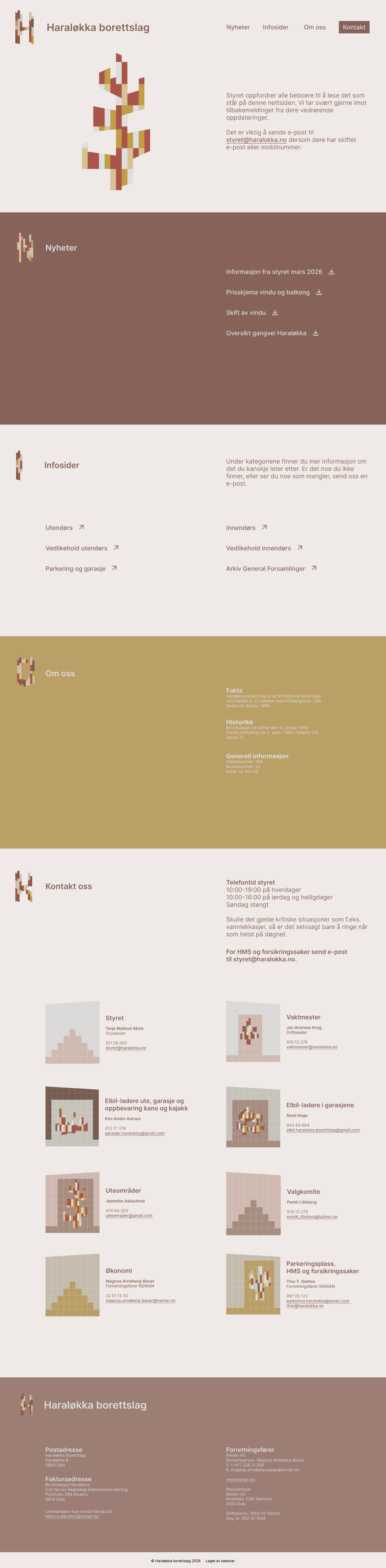 Haraløkka borettslag i Bølerlia består av flere blokker bygget rundt 1960 og ligger tett på både Haraløkka idrettsanlegg og Østmarka. Nettsiden fungerer i dag hovedsakelig som en informasjonskanal for beboere, men fremstår som en lang én-side løsning med popups, midtstilt tekst og mange bilder. Dette gjør det vanskelig å finne informasjon raskt.